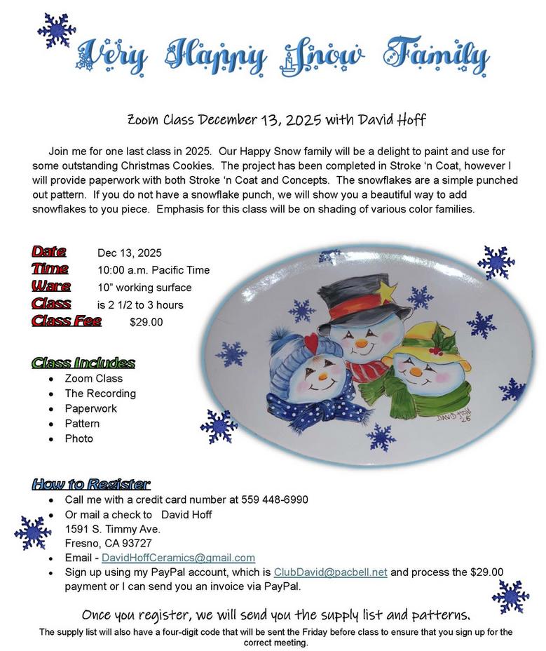We have decided to remove the shopping cart from our website...davidhoff.com. With so many changes in the industry, with the loss of Duncan and my semi-retirement our Shopping cart is no longer needed. Therefore to sign up for Zoom Classes, Club David or other Purchases contact me directly.